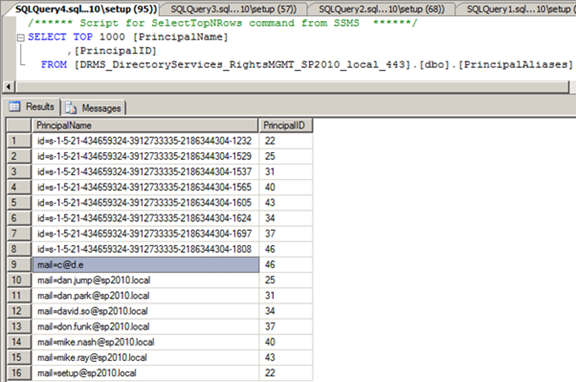 RMS issues this query using the SID of the user that just logged on to RMS, returning whatever mail or proxyAddressess attribute data the cache might hold for that user. If the SID isn’t found in the cache database, the process skips to step 8 below.Note: for SharePoint people, this approach of peeking inside an RMS database probably feels very wrong, but the RMS team seem to be more comfortable with this sort of thing in some cases, like when it comes to cache configuration.