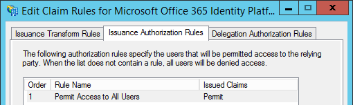 Many people think of AD FS as merely a federated authentication service. And with a name like Active Directory Federation Services, it’s easy to see why. However, it also has the capacity to make authorisation decisions within its Claims Engine. This may be most familiar as the Office 365 Client Access Policies, but those policies are basically just a flavour of AD FS Issuance Authorisation Rules. An AD FS Issuance Authorisation rule provides a gate at AD FS, where permissions can be granted or denied to authentic users, per-Relying Party, before giving the user Claims for the requested Relying Party. In most cases we will think about these rules as coarse controls, to block a wide category of requests, such as those originating from outside the network, for members of a group, or for any combination of request-based, device-based and user attribute-based Claims. We can even create authorisation rules based on the user’s Identity Provider, or from additional factors of authentication. We will typically still implement most of our authorisation logic within the Relying Parties we are authenticating to, but in some cases it’s very useful to control access at this intermediary tier – especially if a large class of users, devices or networks should be treated as higher risk.