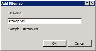 Hopping on to my server, I click the Create a new sitemap link and specify the Sitemap file name.