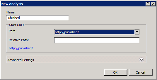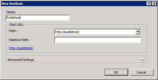 The New Analysis box pops up.