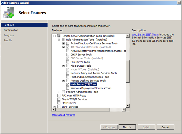 Expand the Remote Server Administration Tools node and select the Web Server (IIS) Tools node.