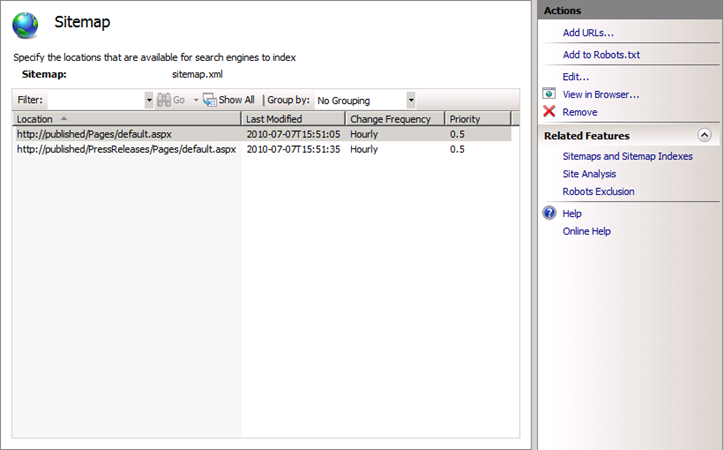 One thing to note is that the robots.txt file did not appear for me during testing until after I stopped and started the website in IIS. This is only an issue when it’s created for the first time, but worth noting. I believe this is also true for the sitemap.xml. file.