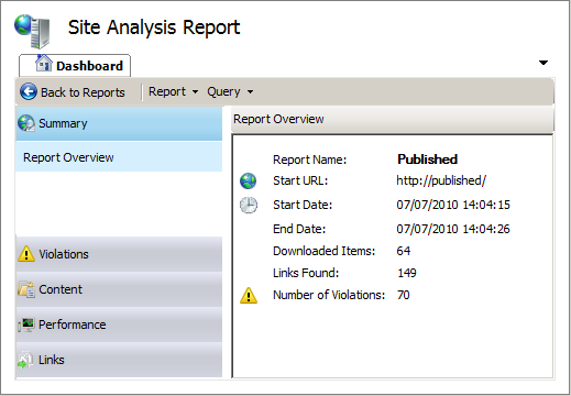 I shan’t go over everything here because there is an excellent three minute video on the SEO Toolkit home page (linked above), which details the basic functionality of the tool.