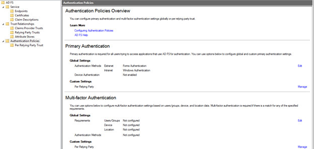 Also, ADFS ships with a pre-configured Relying Party, the Device Registration Service (clearly supporting some of the Device Authentication scenarios).